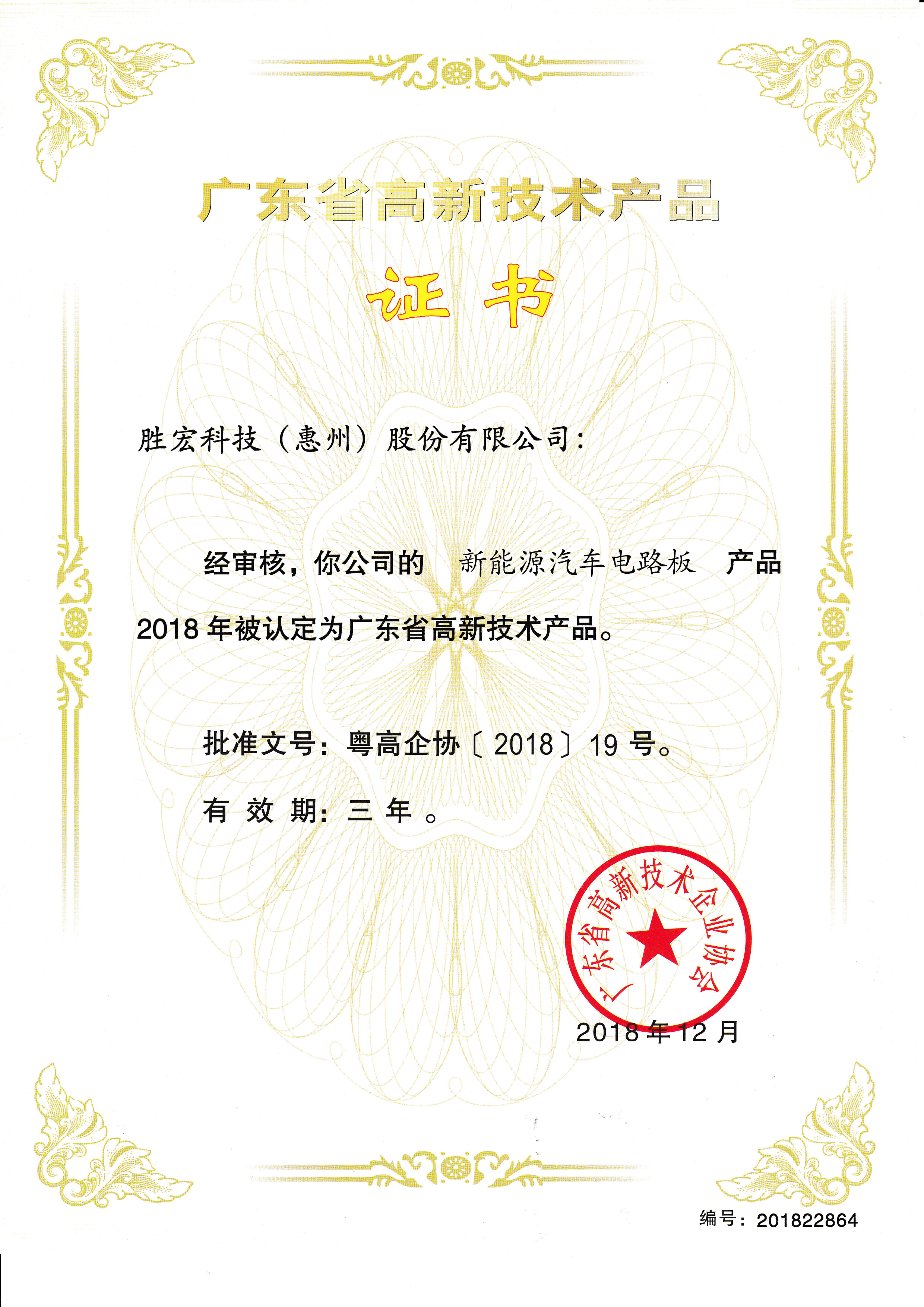 "Clean Energy Vehicle Circuit Board" Reputable High-Tech Product Certificate