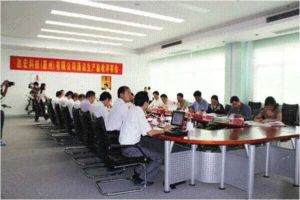 2011年10月19日上午11時(shí),廣東省清潔生產(chǎn)中心、惠州市經(jīng)信局、環(huán)保局、科技局等單位的代表以及特邀能源、環(huán)保專(zhuān)家,對(duì)我司進(jìn)行清潔生產(chǎn)審核驗(yàn)收,技術(shù)依托單位——惠州市惠智通節(jié)能環(huán)保技術(shù)服務(wù)有限公司的代表、公司董事長(zhǎng)特助趙助理、環(huán)保課以及各部經(jīng)理參加了專(zhuān)家評(píng)審會(huì)。