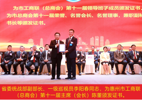 12月8日,惠州市工商業(yè)聯(lián)合會(huì)(總商會(huì))第十一次代表大會(huì)召開。大會(huì)聽取并審議通過了惠州市工商聯(lián)(總商會(huì))第十屆執(zhí)行委員會(huì)工作報(bào)告,選舉產(chǎn)生了惠州市工商聯(lián)(總商會(huì))第十一屆執(zhí)行委員會(huì),董事長(zhǎng)陳濤當(dāng)選為惠州市工商聯(lián)(總商會(huì))第十一屆主席(會(huì)長(zhǎng))。