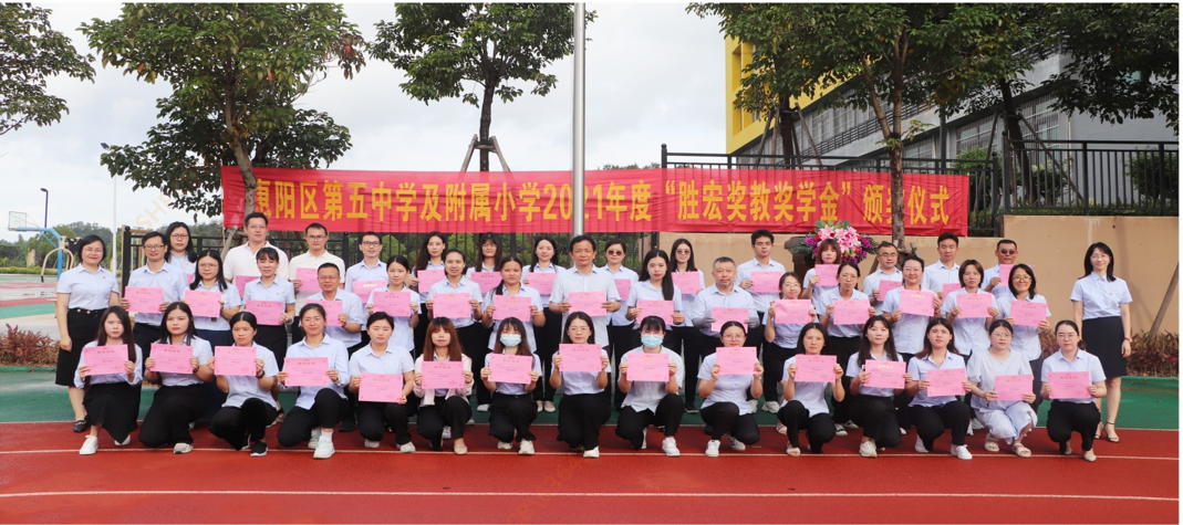 為傳承尊師重教的中華民族優(yōu)良傳統(tǒng),營造崇學尚學之風,助力惠陽區(qū)第五中學及附屬小學(以下簡稱惠陽五中)提高教學水平,我司于2020年8月在惠陽五中設立“金年會獎教獎學金”,從2021年至2025年,連續(xù)五年每年捐贈人民幣50萬元,其中每年40萬元用于獎教,10萬元用于獎學,捐贈總額為250萬元。2022年6月20日上午,為表彰先進,樹立榜樣,惠陽五中全體師生齊聚小學部田徑運動場,隆重舉行2021年度“金年會獎教獎學金”頒獎儀式,人力資源總監(jiān)王耘代表金年會科技參加了此次頒獎儀式。
